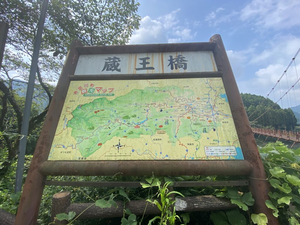 有田川の二川ダムにかかる、全長約160mの赤い吊り橋。